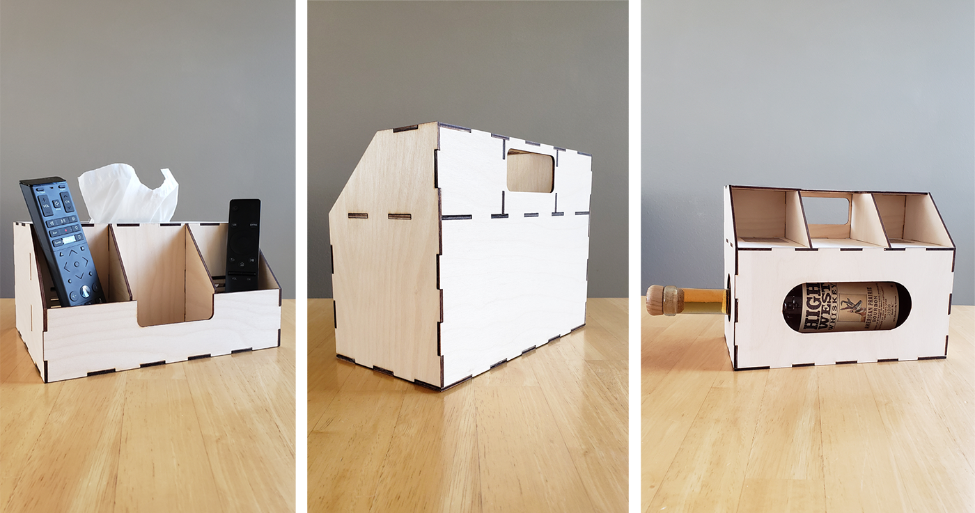 2020 • Laser Design: This is from a series of package designs that are first gift boxes for alcohol and then have another purpose. This one converts into a kleenex and remote control holder.