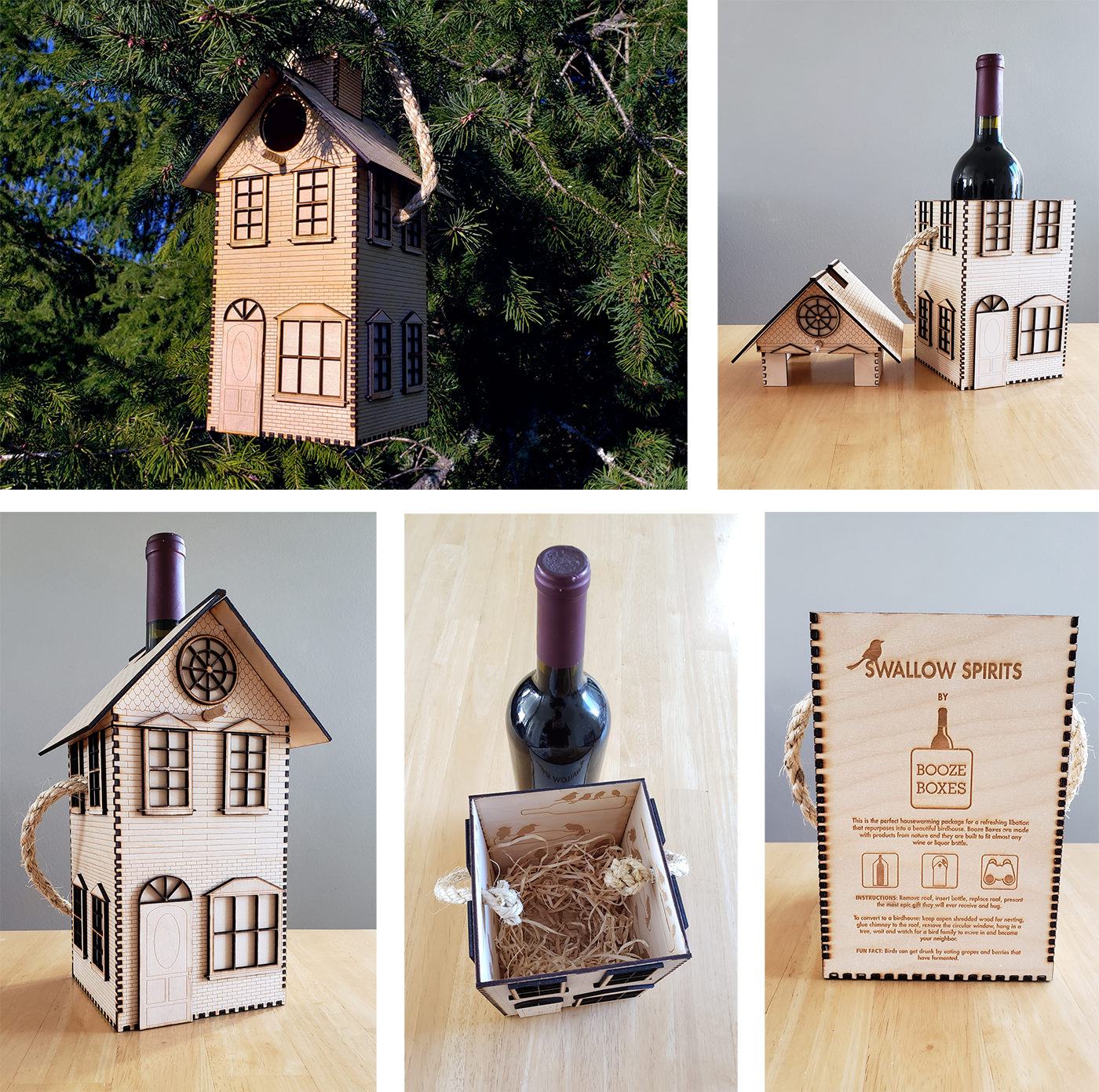 2020 • Laser Design: This is from a series of package designs that are first gift boxes for alcohol and then have another purpose. This one converts into a birdhouse.