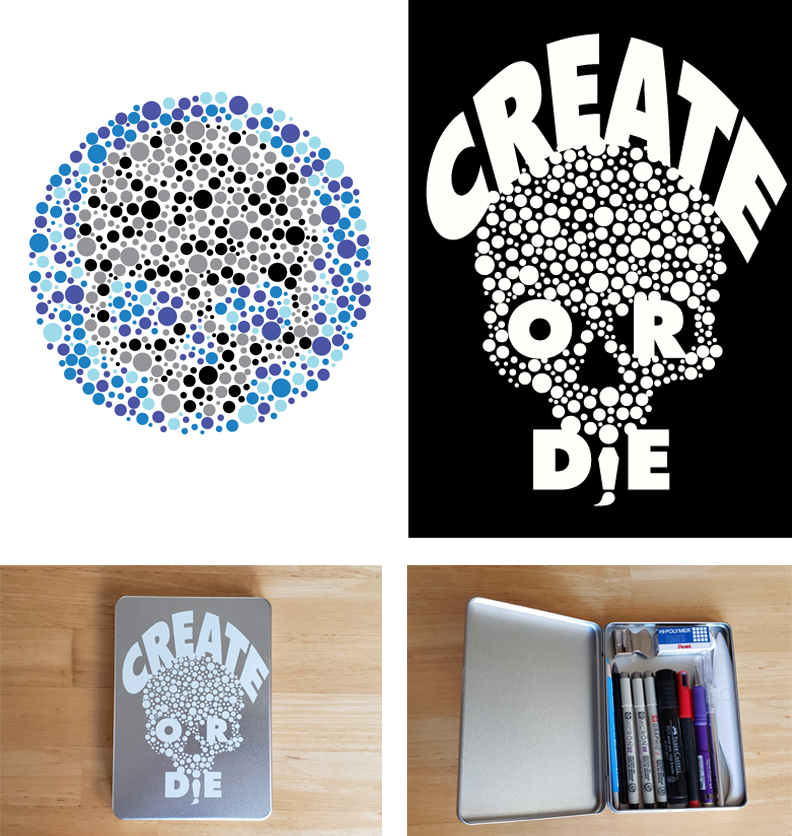 2019 • Package Design: This project started as a screenprinting and was repurposed as the cover for an art tin.