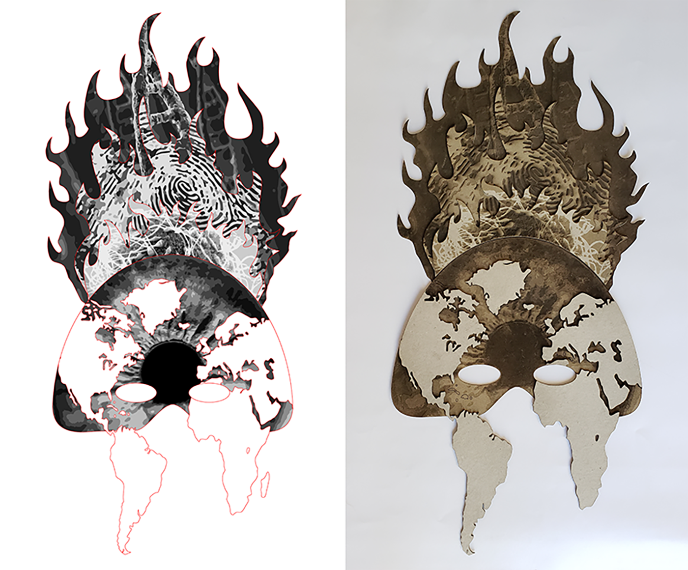 2019 • Laser Design: Laser etched and cut on chipboard. This is a funeral mask for earth.
